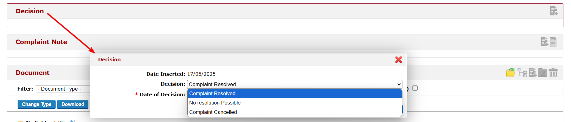 New Complaint → Lodged → Assigned → More Info Required → More Info Received → Resolved → Cancelled